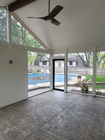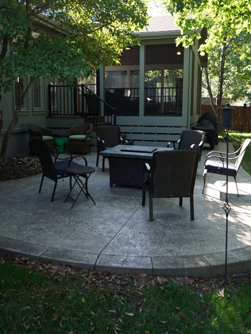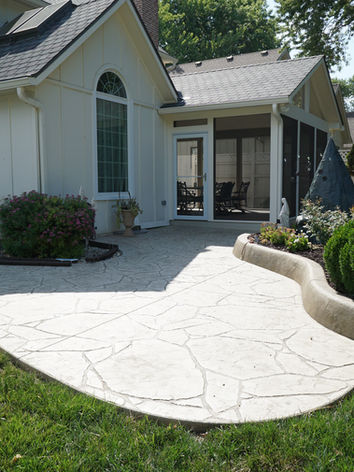 This project features a stamped concrete patio designed to enhance the backyard living space with a durable, low-maintenance surface. The layout provides a clean and functional area for outdoor seating and entertaining. Located in Kansas City, MO.